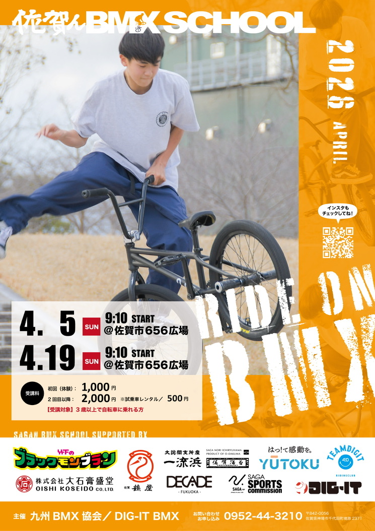 佐賀んBMXスクール、2026年4月の開催スケジュールです。 BMXスクールの開催日は4月 5日(日 続きを読む