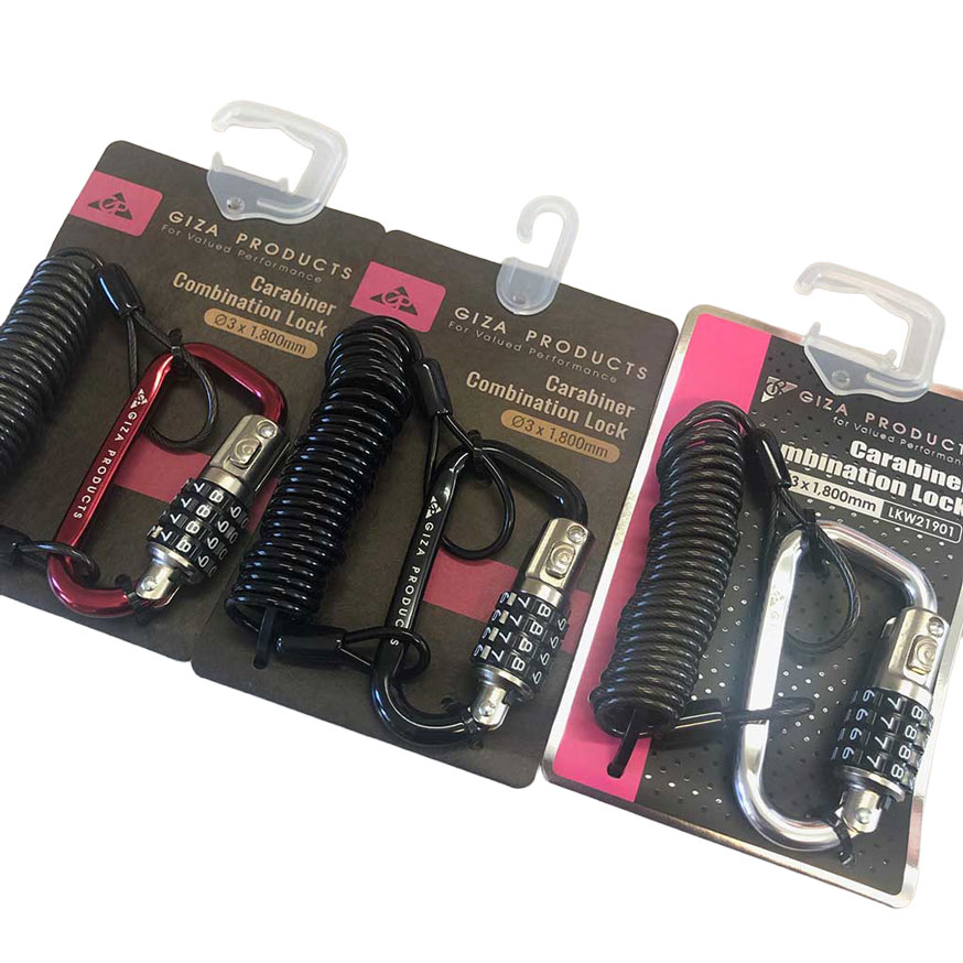 *任意の4けたの数字にセットできるカラビナ型コンビネーションロックと