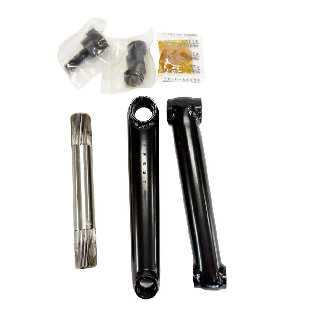 HERESYの3PCクランクはPROFILEと同じ19mm、48スプライン仕様のシンプルな超軽量クロモリクランクです。