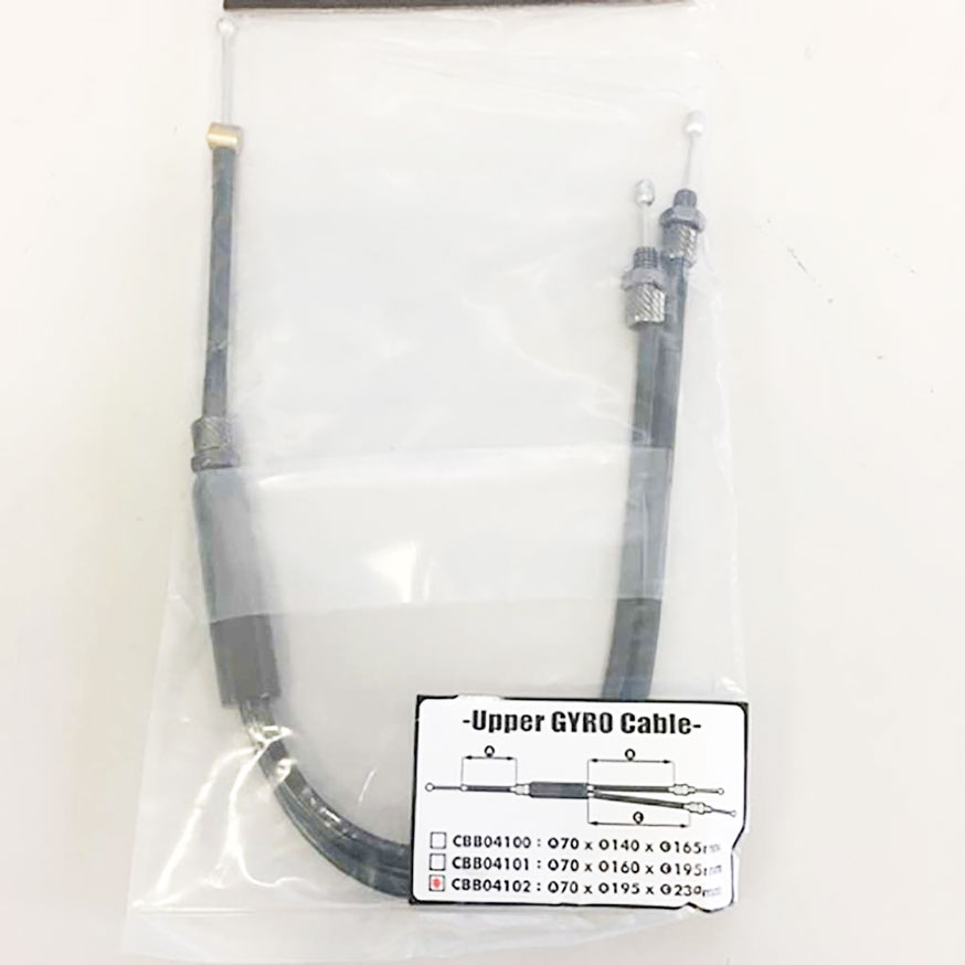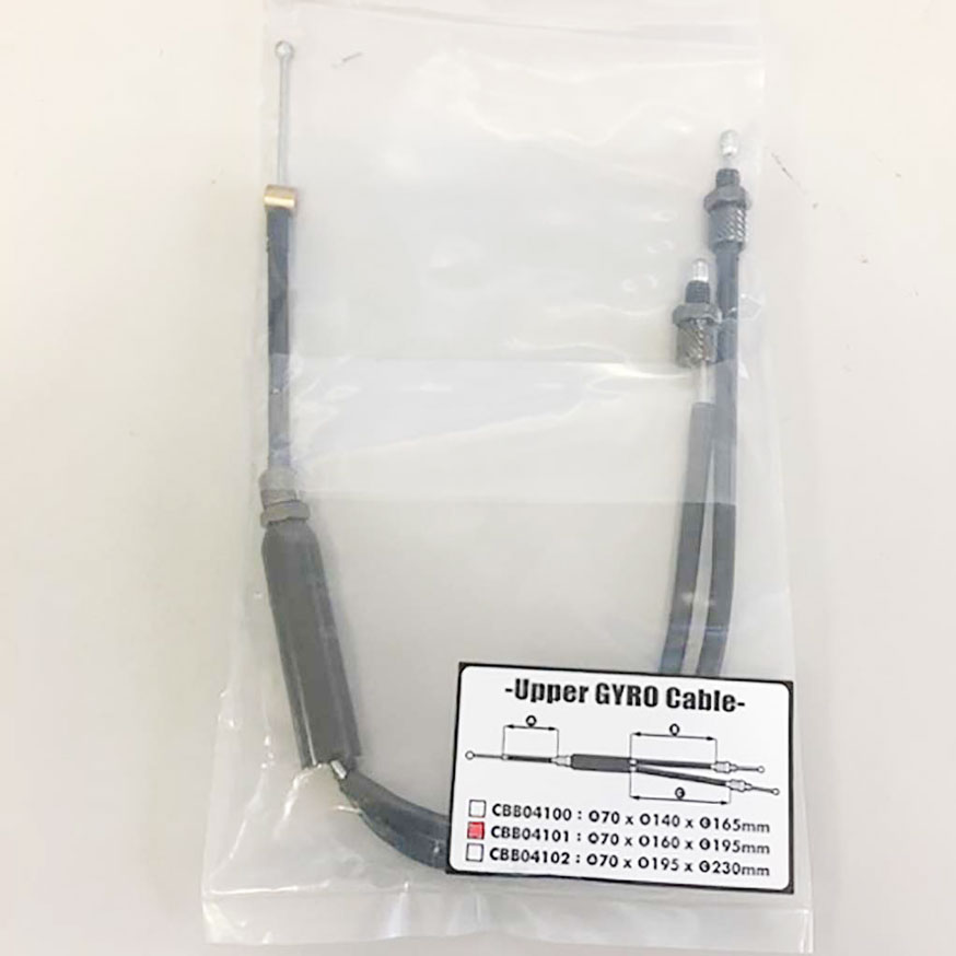 (レバー側アウター70mm、ジャイロローター側の長い方のアウター長195mm、短い方が 160mm)