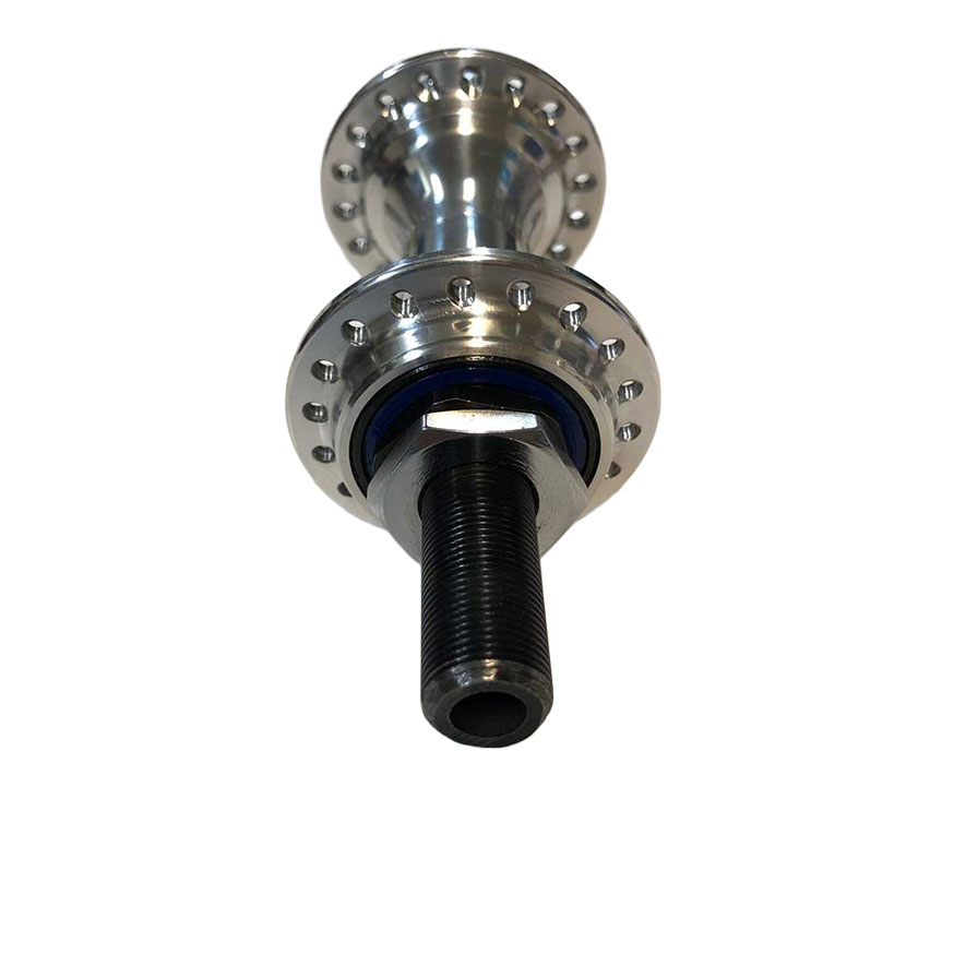 *14mmクロモリ中空アクスル軸を採用したアンギュララジアル フロントハブ MK-M14 はシールドベアリングを使用したハブとは異なるアンギュララジアル ベアリングを使用したフロントハブです。