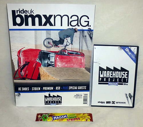 な〜んと! WAREHOUSE PROJECTというナイスなDVDビデオがおまけでついてくる UK RIDE BMXマガジンの最新号 171号が入荷しました。ビデオと雑誌と両方楽しめますよ!