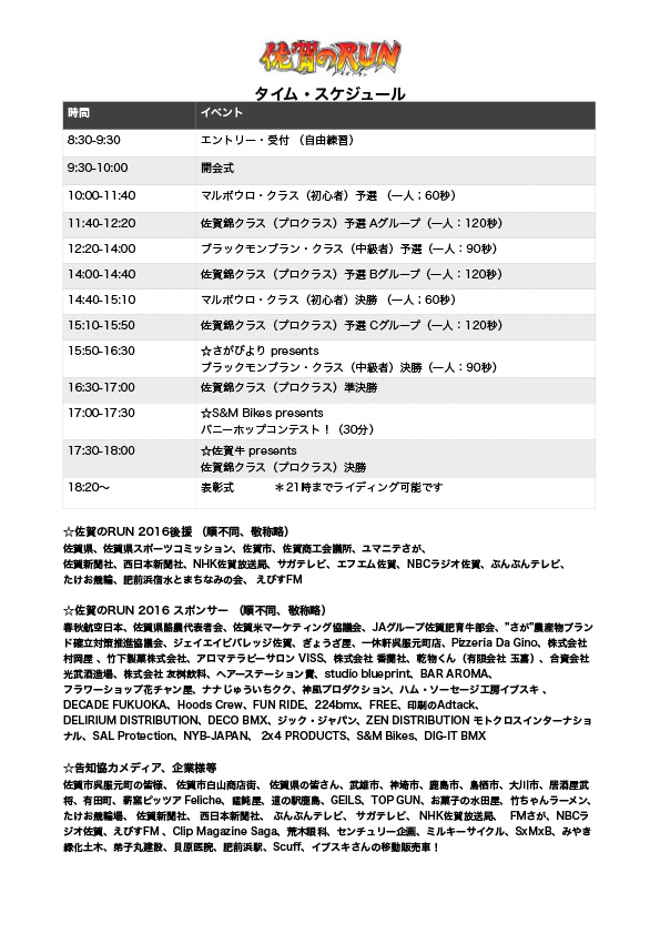 7月17日開催の 佐賀のRUN コンテストのスケジュールです