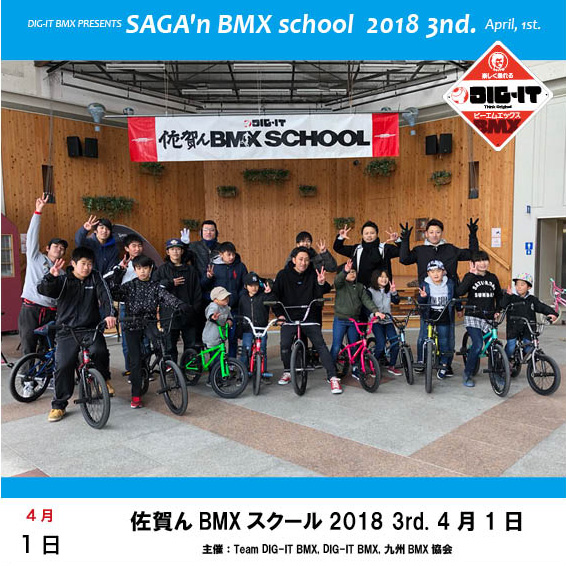 お馴染み佐賀んBMXスクール、2018年第三回は 4月1日(日曜日)に開催が決定しました。