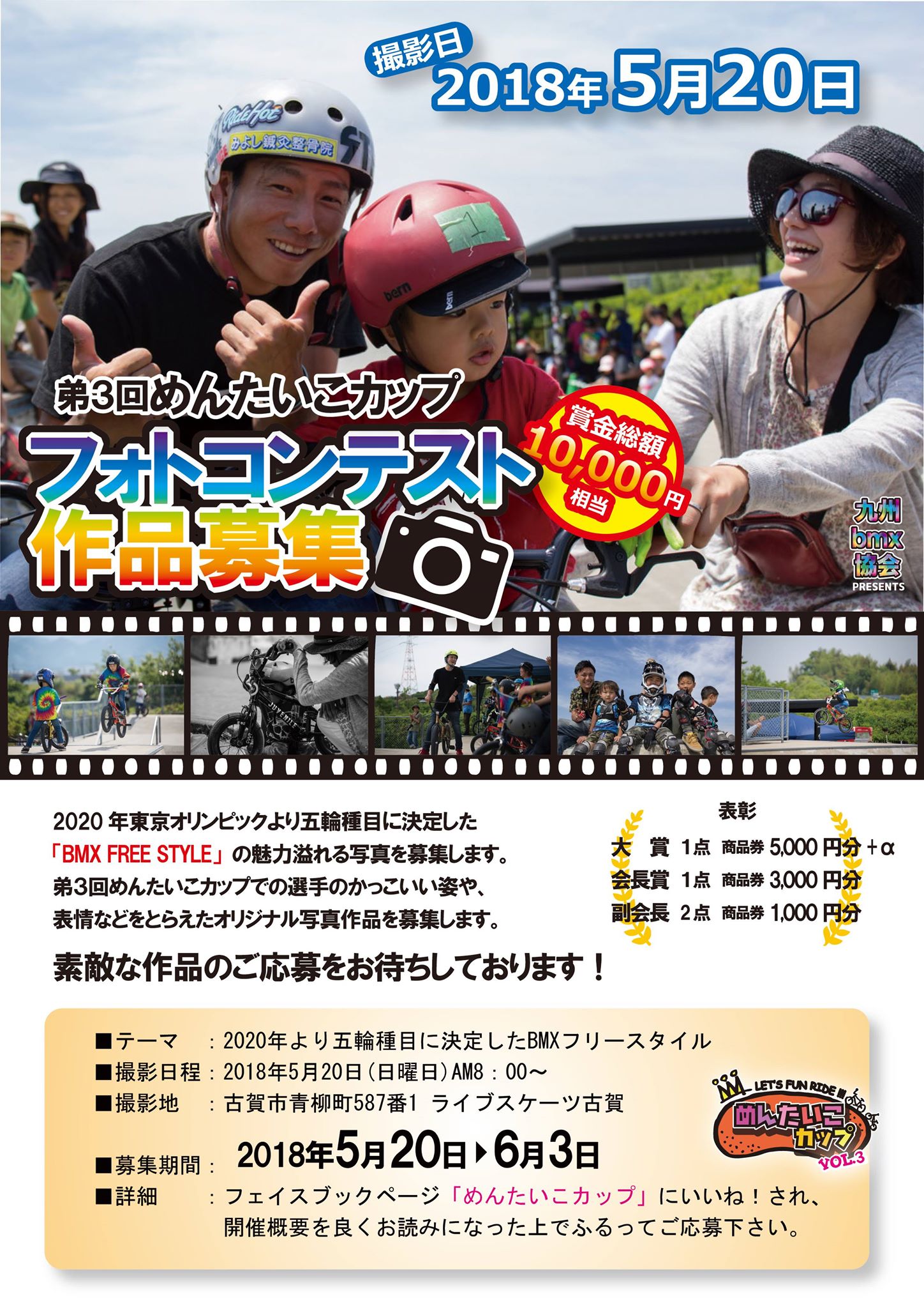 5月20日は福岡県古賀市のライブスケーツ古賀にて 第三回めんたいこカップが開催されます。 またそれに合わせて フォトコンテストも開催です! ぜひ皆さん開場に来てくださいね。