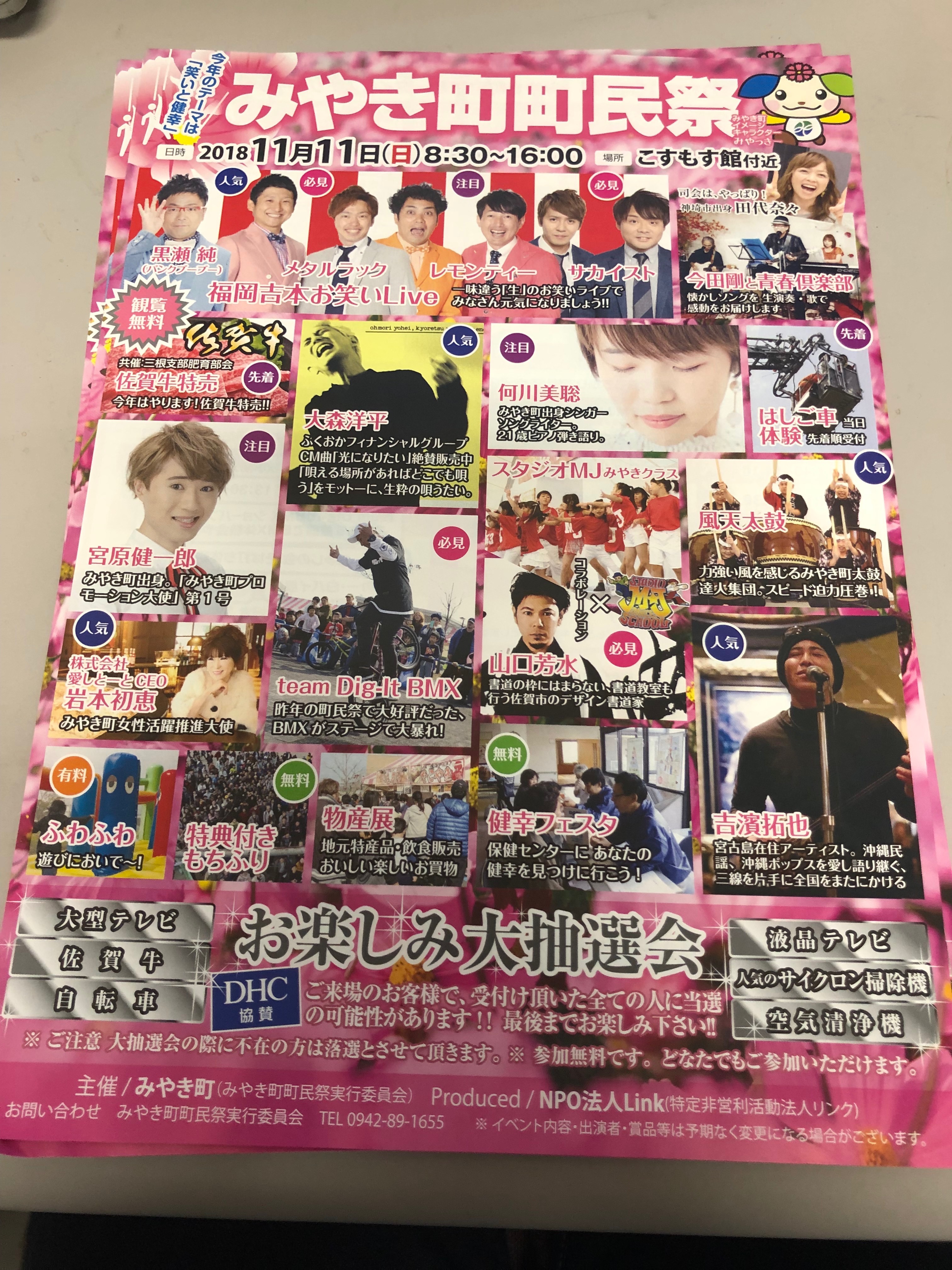 Team DIG-IT BMXでは 11月11日は 「みやき町町民祭」に参加させて頂きます。 町民祭ではBMXショー(13:40〜14:10)の他の BMX試乗会を全日開催します。 ぜひ遊びに来てください。